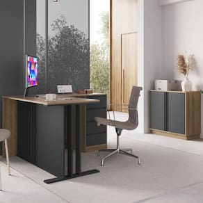 Com design diferenciado Mesa E Balcao Para Escritorio Office foi desenvolvido para aliar modernidade e organização, tornando qualquer ambiente de trabalho ou home office ainda mais funcional e estiloso. Composto por mesa em L e balcão, produzidos em MDP 15 mm. A mesa conta com 2 tampos (120 e 130 cm) que juntos suportam até 20 kg, 4 gavetas (capacidade para até 5 kg cada), corrediças metálicas, puxadores tipo cava, laterais com detalhes ripados em alto relevo e fundo em MDP 3 mm. O balcão possui tampo superior (com capacidade para até 15 kg), 2 portas com dobradiças metálicas e detalhes ripados no batente, 1 prateleira interna com suporte para até 10 kg, rodapé integrado (7 cm) e aberturas tipo cava. Acabamentos em impressão UV texturizada fosca. Este conjunto chegará em sua casa separado em 04 volumes.