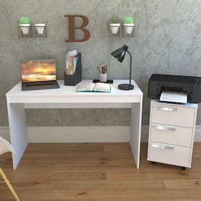 Mesa e Gaveteiro 3 Gavetas Para Escritório Gamer B29, é a opção perfeita para quem busca estilo e funcionalidade. Estrutura produzida em MDP de 15mm, oferecendo solidez e resistência a peça. Contando com acabamento FF (Fosco), garantindo durabilidade e estilo ao produto. Mesa possui tampo grande e espaçoso, ideal para acomodar seu computador e uma variedade de objetos com conforto e praticidade. Gaveteiro composto por 3 Gavetas equipadas com corrediças metálicas e puxadores em plástico, com amplo espaço para armazenar itens e 4 pés rodízios giratórios. Suportando até 20kg o tampo e 5kg cada gaveta. Ideal para criar seu espaço de jogos, home office ou escritório. Estes móveis chegarão na sua casa separados em 2 volumes.