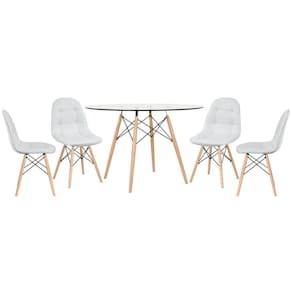 Fabricante: Mobili | RBN: 17100657011 | Altura: 75 cm | Cor: Multicolorido | Garantia do fabricante: 3 meses | Largura: 120 cm | Peso do produto: 20 kg | Produto: Conjunto de Mesa e Cadeiras | Quantidade de lugares: 4 | Material do tampo (mesa): Vidro incolor temperado 8 mm | Material da base (mesa): Madeira e aço | Altura (mesa): 75 cm | Diâmetro (mesa): 120 cm | Material do assento (cadeiras): Coro PU | Material da base (cadeiras): Madeira e aço | Altura do assento (cadeiras): 45 cm | Largura do assento (cadeiras): 44 cm | Profundidade do assento (cadeiras): 38 cm | Peso suportado (cadeiras): 130 kg | Estado de origem: SC | Comprimento: 120 cm | Material para filtro: Vidro | Tonalidade: Multicolorido Cor: Cinza-claro