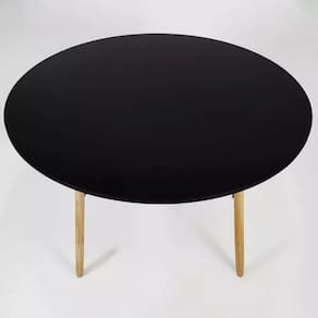 Fabricada em MDF de 18 mm com acabamento fosco, a mesa combina durabilidade e estilo, tornando-se um elemento central em qualquer ambiente. Sua forma redonda e altura de 77 cm garantem conforto e pde, enquanto a espessura da tampa de 1,5 mm assegura resistência e estabilidade.