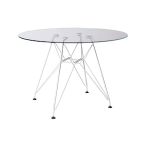 MESA EAMES FERRO BRANCO TAMPO REDONDO VIDRO 90CM