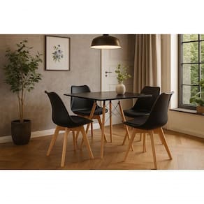 Atualize seu ambiente com este conjunto que une estilo, conforto e praticidade. O Kit Mesa Eiffel Quadrada com 4 Cadeiras Leda é a escolha perfeita para quem busca qualidade e elegância em um só lugar.