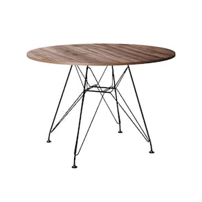 Mesa Eiffel Redonda 110cm Tampo de Madeira Amendôa com Base de Ferro Preto - Marrom