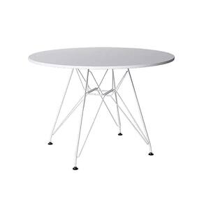 Mesa Eiffel Redonda 110cm Tampo De Madeira Branco Com Base De Ferro Branco A Mesa Eiffel é a escolha ideal para deixar sua casa muito mais bonita e renovada. Essa mesa tem em sua estrutura materiais de altíssima qualidade, que proporciona muito mais resistência, mesmo com o passar dos anos. Ela tem formato redondo e possui espação para 4 lugares, o que é ideal para um jantar em famÍ;lia. A mesa é versátil e combina com vários tipos de decoraçãão, o que dá mais praticidade em casa.Tipo: MesaModelo: EiffelCor: BrancoDimensões do Produto- Altura: 80cm- Di âmetro: 110cmCaracterÍ;sticas- Base: ferro entrelaçado branco- Tampo de Madeira (mdp) com espessura de 25mm- Necessita Montagem? Parcialmente (Produto Entregue Montado Parcialmente)Mesa Eiffel Redonda 110cm Tampo de Madeira Branco com Base de Ferro Branco
