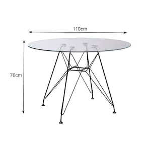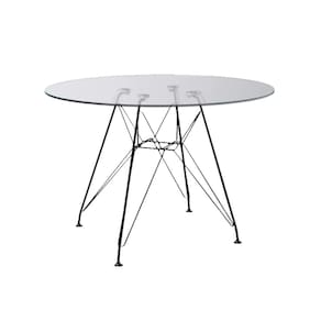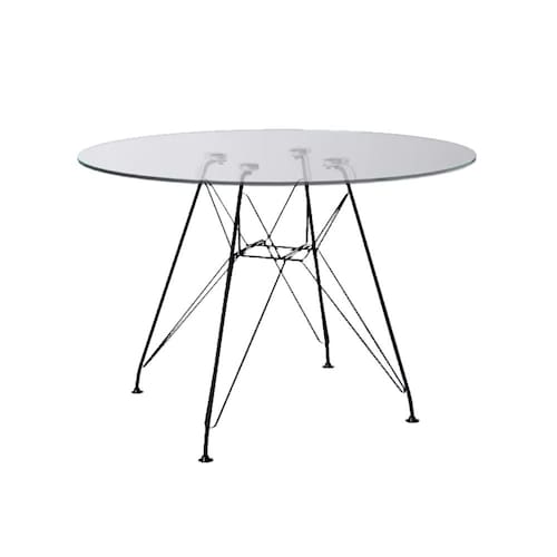 Mesa Eiffel Redonda 110cm Tampo De Vidro Com Base De Ferro Preto A Mesa Eiffel é a escolha ideal para deixar sua casa muito mais bonita e renovada. Essa mesa tem em sua estrutura materiais de altíssima qualidade, que proporciona muito mais resistência, mesmo com o passar dos anos. Ela tem formato redondo e possui espaço para 4 lugares, o que é ideal para um jantar em família. A mesa é versátil e combina com vários tipos de decoração, o que dá mais praticidade em casa.