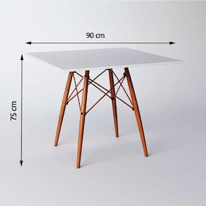 Mesa Eiffel Wood Cobre Tampo De Madeira Quadrado 90 Cm Branco New Green - Cor: Branco