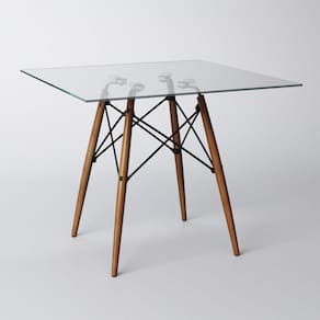 Mesa Eiffel Wood Tampo De Vidro Quadrado 110 Cm New Green - Cor: Branco