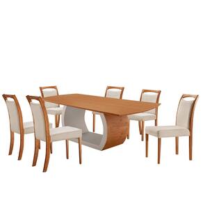 Mesa Ellis 180cm Tampo Laminado Canto Barril com 6 Cadeiras Munique - Off White