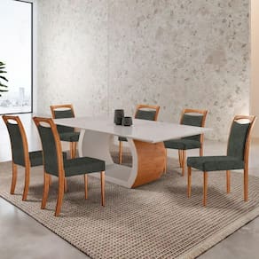 Mesa Zeus 180cm Tampo Com Vidro Laqueado com 6 Cadeiras Livia