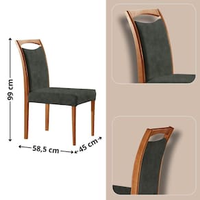 Acompanhando a mesa, a Cadeira Munique complementa o conjunto com seu design classico e conforto excepcional. Com assento e encosto estofados, ela oferece o suporte ideal para momentos prolongados a mesa, enquanto os detalhes em madeira curvados no encosto adicionam um charme sutil e sofisticado.