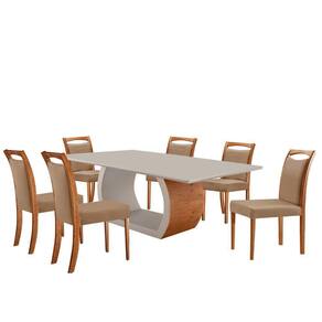 Mesa Zeus 180cm Tampo Com Vidro Laqueado com 6 Cadeiras Livia