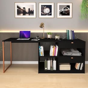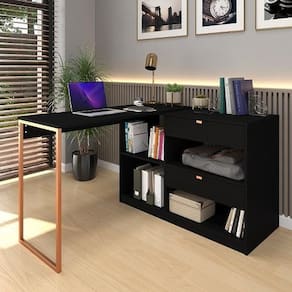 Mesa Em L Computador Escritório De Canto Industrial Retrô Preto Com Cobre Ter um escritório moderno e organizado é o sonho de quem trabalha e ama o que faz Já imaginou seu escritório digno de filme A decoração se tornou algo importante não só para casa , mas para escritórios também, se sentir a vontade no local que passamos a maior parte do dia é de extrema importância. A mesa é toda confeccionada em madeira mdp e metal, prática, moderna e linda é o que falta para transformar seu ambiente de trabalho e deixar sua sala ainda mais moderna.