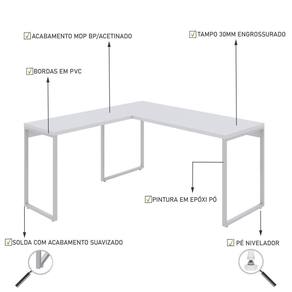 Sobre o ProdutoMesa em L Kuadra Diretor 150X150X75cm Amadeirado / Est.BrancaDescrição do Produto:A Mesa Diretor KUML6150 tem montagem simples e versátil, podendo ser utilizada em composições com a mesa auxiliar no lado esquerdo ou direito, sendo perfeita para fazer parte do seu escritório ou Linha Kuadra tem seu design com inspiração no estilo industrial, que remete muito a decoração usada nos Lofts das grandes metrópoles nos anos 60 e 70. Harmonizando o metal e os tons de madeira, foram projetados móveis versáteis e com estilo, que podem compor ambientes íveis cheios de personalidade, perfeitos para você decorar sua casa ou seu trabalho, tendo um resultado que caminha do estilo rústico ao Inclusos:1 MesaDimensões dos Produtos:Mesa em L Kuadra Diretor 150X150X75cm Amadeirado / 150 x 150 x 75 cmInformações Logísticas (Comp. X Prof. X Alt.) 165 x 64,5 x 10 cm - Peso: 25,741 KgPeso Total: 25,741 KgObservações:Não acompanha acessórios decorativos. Imagens meramente ilustrativas.Informações Técnicas / Características:- Cor do Produto: Amadeirado / - Marca: Compace- Modelo: KUML6150- Linha: Kuadra- Material: Mdp- Material da Estrutura / Pés: Aço- Acabamento: BP Acetinado- Escala de Brilho: Fosco- Fita de Borda: Pvc - Possui Gavetas: Não - Possui Pés: 3- Pés Niveladores: Sim - Acabamento Estrutura: Epóxi-Pó Texturizado- Formato: Em L - Suporta Até (kg): 45 kg- Comprimento: 150cm- Profundidade: 150cm- Altura: 75cm - Peso Lí.: 24,56Kg- Recomendações de Uso, Manutenção e Limpeza: Para a limpeza, utilize flanela seca ou pano macio levemente umedecido em água. Utilize um pano seco em seguida. Evite com produtos químicos e não utilize nenhum tipo de esponja de aço.- Necessita de Montagem: Sim / Acompanha Manual de Montagem- Complexidade da Montagem: Média- Garantia: 6 meses