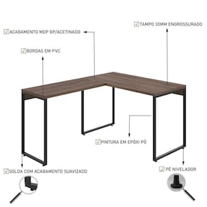 Mesa em L Kuadra Office 120X150X75cm Amadeirado / 120 x 150 x 75 cm
