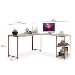 Mesa Em L Office Em Mdf Estilo Insdustrial Klm Store Bronze Com Off White A Mesa Office em L Estilo Industrial MDF e Metal e perfeita para quem busca praticidade e estilo. Com uma montagem rapida de apenas 20 minutos, voce tera uma mesa de alta qualidade em aco carbono e MDF, com uma capacidade de peso de ate 20 kg. Seu design em forma de L proporciona um espaco amplo e confortavel para suas atividades diarias. Alem disso garante um ambiente de trabalho ergonomico e funcional. Ideal para quem busca um movel duravel e com um toque industrial na decoracao. Caracteristicas: Marca: KLM Store Material da Estrutura: MDF/Aco carbono Suporta ate: 20 kg