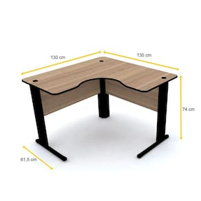 - Dimensões: 74 cm de altura x 130 cm de largura (mesa 1) x 130 cm de largura (mesa 2) x 61,5 cm de profundidade.