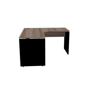 Pés na cor preta e tampo em madeira escura, espaçosa, elegante e acima de tudo versátil! Essa mesa em L atende a diversas funções e necessidades suas ou da sua equipe. Trabalhos que exigem mais de um monitor, consultórios, recepções, estações de atendimento a clientes e pacientes, diretoria de escolas, escritórios de advocacia, lojas... são apenas alguns dos exemplos de uso para essa peça. Esse móvel vai levar para a sua empresa ou sala de trabalho uma melhor convivência, mais espaço e mais organização, vindo inclusive com a possibilidade de instalação de gaveteiros aéreos (comprados separadamente). Com essa mesa que é uma verdadeira estação de trabalho, você garante máximo conforto para seu dia a dia corporativo, aumentando a produtividade e organização do ambiente. Isso sem falar que seu espaço de trabalho ganha um novo aspecto e mais elegância com apenas uma peça. Esse produto faz parte da Linha P25 da Pandin, uma linha com design clássico e cheia de estilo, com diferentes combinações de cores, perfeita para diversos profissionais e ambientações.