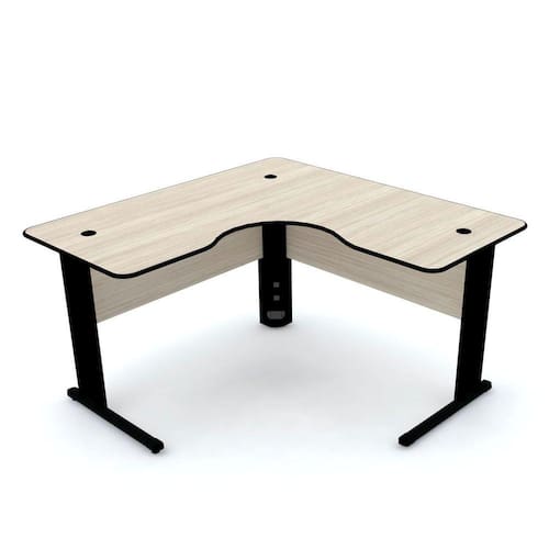 - Possui 2 calhas passa fios em poliestireno para passagem dos fios entre o tampo e o pé da mesa.