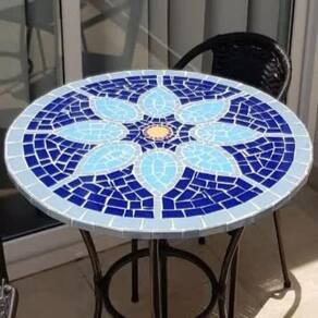 Especificações técnicas do mosaico: Feito com cerâmicas e porcelanas de alta resistência; Borda com acabamento em mosaico Vem montado sobre uma chapa cimentícia leve, o que permite leveza ao mesmo tempo, de alta durabilidade; Resistência e Durabilidade em área interna e externa; Espessura de 20mm Espessura igual à tampos de mármore ou granito Liso e agradável para uso diário; Mosaico feito integralmente à mão com técnica do mosaico romano