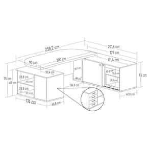 Largura: 114 x 258,2 x 201,4 cm.