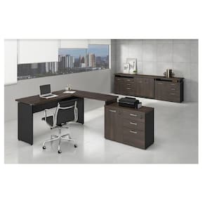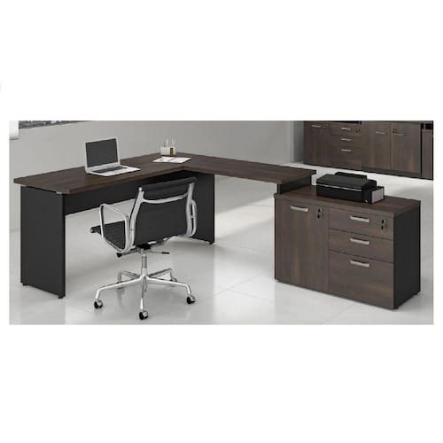Mesa em L Web30 1,20 X 2,32 30mm (engrossurado) com Armário 1 Porta, 3 Gavetas.