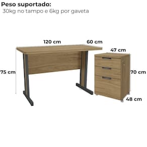 Mesa de Escritório com Gaveteiro linha Versátil, solução funcional com design inteligente para escritórios modernos e ambientes corporativos. Estrutura 100% MDP (tampo mesa 30mm/ gaveteiro 15 mm) com acabamento em pintura BP. Acompanha pés metálicos (na mesa) com pintura epóxi fosco, sapatas niveladoras, 2 gavetas (sendo uma com trava por chave na lateral), 1 gavetão pasta suspensa, corrediças telescópicas, puxadores em polipropileno e rodízios em silicone (no gaveteiro). Estes produtos serão entregue em 03 volumes.