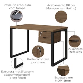 A Mesa para Escritório Frame de 120 cm com Gaveteiro é ideal para quem busca organização, desempenho e estilo industrial no dia a dia. A mesa possui tampo em MDP de 40 mm com acabamento BP (semibrilho), estrutura metálica com pintura epóxi fosca, passa-fio com tampa embutida e sapatas niveladoras, garantindo estabilidade e praticidade em qualquer ambiente. O gaveteiro de mesa, fabricado em MDP de 15 mm, possui 2 gavetas com corrediças telescópicas, sendo uma delas com trava por chave, ideal para armazenamento seguro de documentos ou itens pessoais. Modelo exclusivo para fixação em mesas da linha Frame, com instalação por parafusos. Este produto será entregue em 03 volumes.