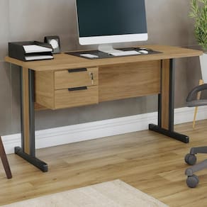 Mesa de Escritório com Gaveteiro linha Versátil, solução funcional com design inteligente para escritórios modernos e ambientes corporativos. Estrutura 100% MDP (tampo mesa 30mm/ gaveteiro 15 mm) com acabamento em pintura BP. Acompanha pés metálicos (na mesa) com pintura epóxi fosco, sapatas niveladoras, 2 gavetas (sendo uma com trava por chave), corrediças telescópicas e puxadores em polipropileno. Fixação exclusiva para mesas da linha Versátil. Estes produtos serão entregue em 03 volumes.