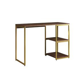 Transforme seu espaço com a escrivaninha com prateleira, um móvel que une praticidade e estilo. Projetada para otimizar ambientes, ela oferece uma superfície ampla para trabalho ou estudo, além de prateleiras integradas que facilitam a organização de livros, documentos e objetos pessoais. Ideal para quem valoriza um ambiente organizado e esteticamente agradável, a escrivaninha com prateleira é mais do que um móvel ? é uma aliada na produtividade diária. Tipo: Mesa Escrivaninha Modelo: Berlim Cor da ferragem: Dourado Cor do tampo: Amêndoa