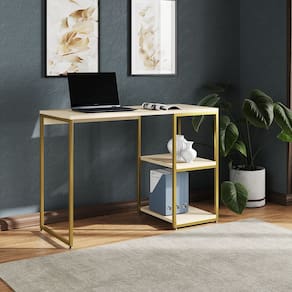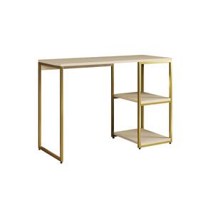 Transforme seu espaço com a escrivaninha com prateleira, um móvel que une praticidade e estilo. Projetada para otimizar ambientes, ela oferece uma superfície ampla para trabalho ou estudo, além de prateleiras integradas que facilitam a organização de livros, documentos e objetos pessoais. Ideal para quem valoriza um ambiente organizado e esteticamente agradável, a escrivaninha com prateleira é mais do que um móvel ? é uma aliada na produtividade diária. Tipo: Mesa Escrivaninha Modelo: Berlim Cor da ferragem: Dourado Cor do tampo: Off White