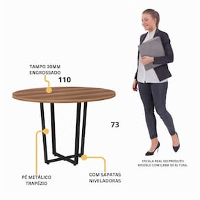 Mesa Escritório De Reunião 110cm Redonda Multimóveis Cr25331 Sevilha Preto Transforme suas reuniões em momentos mais produtivos e inspiradores com a Mesa Escritório de Reunião 110cm Redonda Multimóveis CR25331. Com design moderno, ela promove interação e conforto, tornando o ambiente corporativo mais colaborativo e elegante. Ideal para escritórios, salas de reunião ou espaços compartilhados. Diferenciais: - Produzida em MDP de reflorestamento: durável e ecologicamente correta. - Acabamento em BP: superfície sofisticada e fácil de limpar. - Tampo redondo de 30mm: resistente, suporta até 20kg com estabilidade e . - Pés metálicos em formato de trapézio: visual moderno e elegante. - Sapatas niveladoras: mantêm a mesa estável. - Design versátil: combina facilmente com diferentes estilos de decoração e mobiliários corporativos.