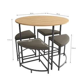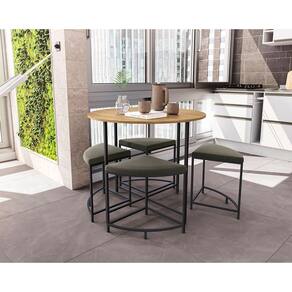 Produto: Mesa Desk com 4 Bancos Cor: Freijó/Preto Fosco Altura (cm): 76,5 Largura (cm): 90 Profundidade (cm): 90 Peso Máximo Suportado: Mês 30kg, banco 90 kg Tipo de Pintura: Parte metálica pintura epoxi,MDP pintura UV Materia Prima Estrutura: Tubo 20x20, espessura 0,75mm Acabamento: Fosco Matéria Prima: Metal/MDP Garantia: 3 Meses Necessita Montagem: Sim Informações de Limpeza: Limpeza diária somente com pano seco (flanela) ou pano branco e macio, pois o acúmulo de sujeira estimula o aparecimento de ferrugem. Evitar limpar com água, pois pode ocorrer o acúmulo de líquido em regiões especíicas da peça. Não utilizar produtos de limpeza que possuem cloro em sua formação. Encerar no mínimo uma vez por mês com cera automotiva. Em zona litorânea encerrar pelo menos 1 vez por semana. A maresia e a umidade são altamente prejudiciais ao revestimento. Não utilizar qualquer tipo abrasivo de limpeza. Não deixar as estruturas expostas ao ambiente externo como sacadas, patios...etc. Batidas na estrutura podem ocasionar riscos e desplacamento da camada de pintura. Marca: Não Informado