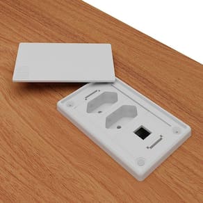 - Acompanha caixa de conectividade com 2 tomadas 10A e encaixe para conector RJ45.
