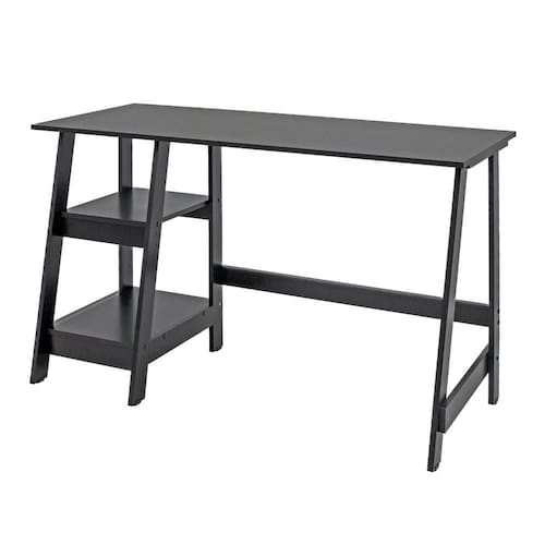Excelente opção de mesa com 2 prateleiras que podem ser montadas em ambos os lados: direito/esquerdo. Quer tornar essa mesa em gamer? Fácil. Se você precisar de espaço para uma grande CPU de computador, é só remover a prateleira intermediária para obter mais espaço.