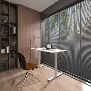 - Ajuste elétrico de altura para alternar entre posições sentado e em pé, variando de 750mm a 1100 mm. A funcionalidade da motorização eletrônica permite alternar entre essas posições, promovendo uma experiência de uso saudável e personalizada.