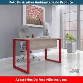 Mesa Escritório P25 TUB Pandin 120 cm (larg) Tampo MDP Nogueira Casablanca Pé Aço Tubular Vermelho - Bege