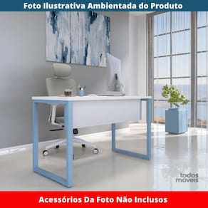 Mesa Escritório P25 TUB Pandin 134 cm (Larg) Tampo MDP Branco Pé Aço Tubular Azul Dali