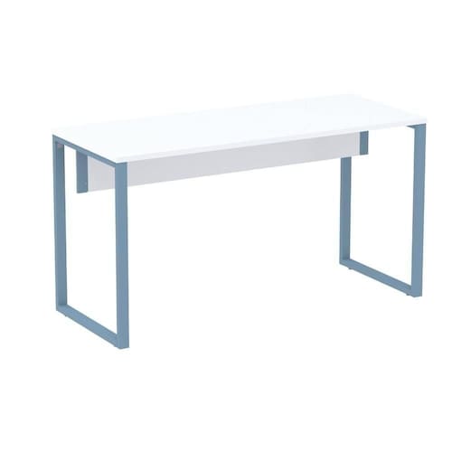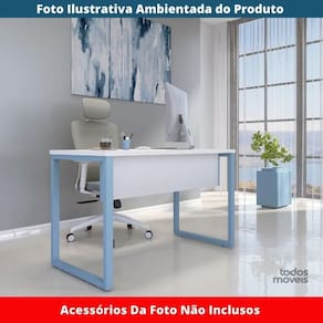 Mesa Escritório P25 Tub Pandin 134 Cm (larg) Tampo Mdp Branco Pé Aço Tubular Azul Dali