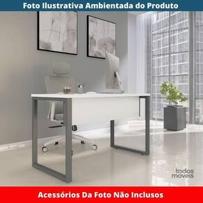 Mesa Escritório P25 Tub Pandin 134 Cm (larg) Tampo Mdp Branco Pé Aço Tubular Grafito