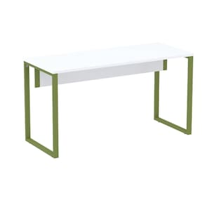 Mesa Escritório P25 Tub Pandin 134 Cm (larg) Tampo Mdp Branco Pé Aço Tubular Verde Mirô