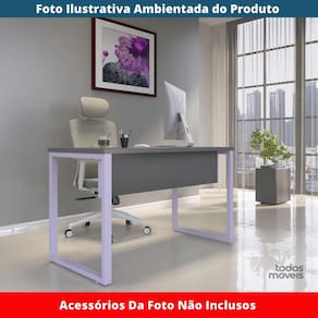 Mesa Escritório P25 TUB Pandin 134 cm (Larg) Tampo MDP Grafito Pé Aço Tubular Lilás - Cinza
