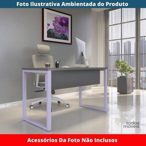 Mesa Escritório P25 Tub Pandin 134 Cm (larg) Tampo Mdp Grafito Pé Aço Tubular Lilás