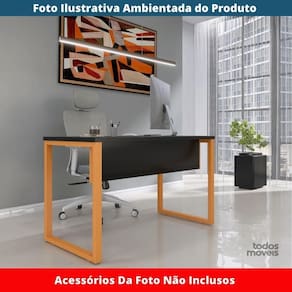 Mesa Escritório P25 Tub Pandin 134 Cm (larg) Tampo Mdp Preto Pé Aço Tubular Laranja