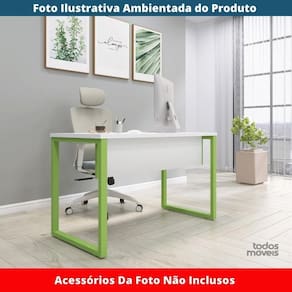Mesa Escritório P25 Tub Pandin 150 Cm (larg) X 70 Cm (prof) Tampo Mdp Branco Pé Aço Tubular Verde