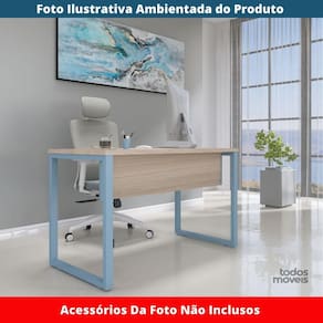 Tampo: Confeccionado em MDP BP de 25mm, composto por partículas de média densidade unidas por resinas sintéticas. O tampo é revestido por ambas as faces com uma folha celulósica decorativa impregnada com resina melamínica, utilizando o processo de prensagem de baixa pressão. Acabamento com fita em PVC de 2mm nas bordas, garantindo resistência e durabilidade.