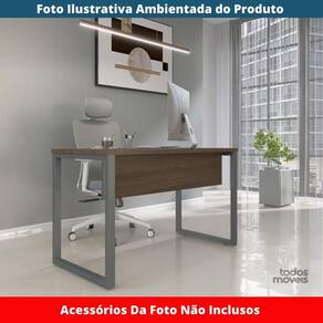 Mesa Escritório P25 TUB Pandin 90 cm (Larg) Tampo MDP Walnut Pé Aço Tubular Grafito - Marrom