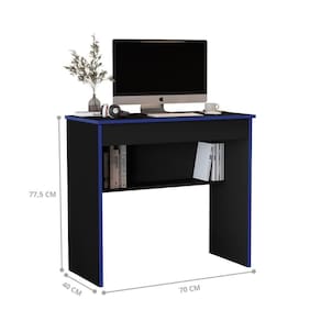 ALTURA DO PRODUTO (CM): 77,5 | ALTURA DO PRODUTO COM EMBALAGEM (CM): 8 | CÔMODO INDICADO: Escritório | COMNTO DO PRODUTO (CM): 40 | COMNTO PRODUTO COM EMBALAGEM (CM): 78 | CONTEÚDO DA EMBALAGEM: 1 Escrivaninha | CORES DO PRODUTO (FILTRO DE CORES): Preto/Azul | COR PREDOMINANTE: Preto | DESCRIÇÃO DO TAMANHO: 77,5x70x40 | ESTADO DE ORIGEM: SP | FORMATO: Retangular | INSTRUÇÕES/CUIDADOS: Limpar com flanela ou pano macio seco, não utilizar produtos abrasivos, desengordurantes, álcool ou solvente. Não expor o produto diretamente à luz solar e à umidade | LARGURA DO PRODUTO (CM): 70 | LARGURA PRODUTO COM EMBALAGEM (CM): 43 | MARCA: Casa H | MATERIAL PARA FILTRO: MDP | MATERIAL PRINCIPAL: MDP | PESO DO PRODUTO (KG): 12,3 | PESO PRODUTO COM EMBALAGEM (KG): 12,3 | PRODUTO: Escrivaninha | PRODUTO PRECISA DE MONTAGEM?: Sim, a montagem é facil mas sugerimos a contratação de um montador para a montagem do produto. Não nos responsabilizamos por danos cas no ato da montagem. | QUANTIDADE DE GAVETAS: 1 | QUANTIDADES DE CAIXAS DE EMBALAGEM: 1