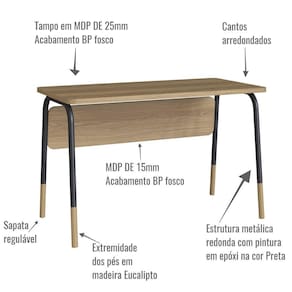 Mesa Escrivaninha 120 cm 27989, foi inspirada no design orgânico e estilo contemporâneo, transformando seu ambiente de trabalho em um lugar leve e confortável. Possui estrutura em MDP, tampo de 25 mm, saia de 15 mm, acabamento em pintura BP (fosco). Composta por amplo tampo com cantos arredondados, seus pés são em tubo de aço com acabamento em epóxi fosco e as extremidades em madeira maciça de eucalipto com sapatas reguláveis. Peso suportado: 20 Kg. Possui ampla superfície para trabalho e estudos, tornando o espaço mais funcional e organizado. Este móvel chegará na sua casa separado em 1 volume.