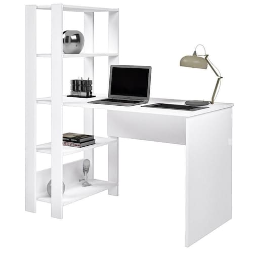Versátil e funcional, ideal para compor escritórios ou quartos com um toque de estilo industrial. Estrutura em MDP de 15 mm, com tampo espaçoso e 3 prateleiras laterais (dupla opção de montagem: lado esquerdo ou direito). Suporta até 26 kg distribuídos entre tampo e prateleiras. Acabamento em pintura UV texturizada (fosco e brilho). Produto entregue em 01 volume.