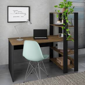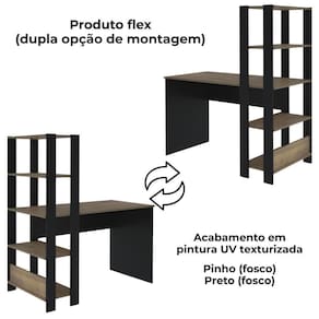 Versátil e funcional, ideal para compor escritórios ou quartos com um toque de estilo industrial. Estrutura em MDP de 15 mm, com tampo espaçoso e 3 prateleiras laterais (dupla opção de montagem: lado esquerdo ou direito). Suporta até 26 kg distribuídos entre tampo e prateleiras. Acabamento em pintura UV texturizada (fosco e brilho). Produto entregue em 01 volume.